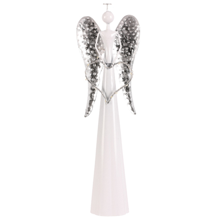 Anděl kovový, se svítícím srdcem (LED), bílá barva.
