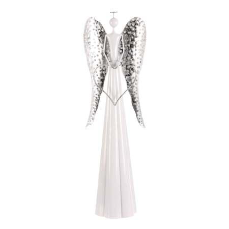 Anděl kovový, se svítícím srdcem (LED), bílá barva.