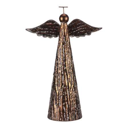 Kovový anděl - dekorace na postavení, velikost "XL", barva měděná.