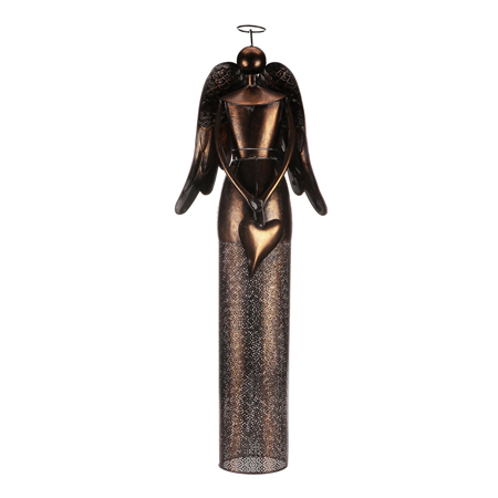 Vyzdobte si váš oblíbení prostor originální ozdobou v podobě elegantního kovového anděla se srdcem v extra velkém provedení. Jeho metalický a zároveň lesklý povrch, odráží dokonale paprsky světla a tím vám vznikne nádherný světelný efekt, zejména při zapálení svíček. Svou měděnou barvou se nejlépe hodí pro Vánoční období, kdy perfektně zapadne do sváteční výzdoby. Anděla tak jednoduše umístěte na stůl, komodu, podlahu a další viditelná místa, odkud vám bude přinášet potěšení a zároveň pocit ochrany a bezpečí domova.