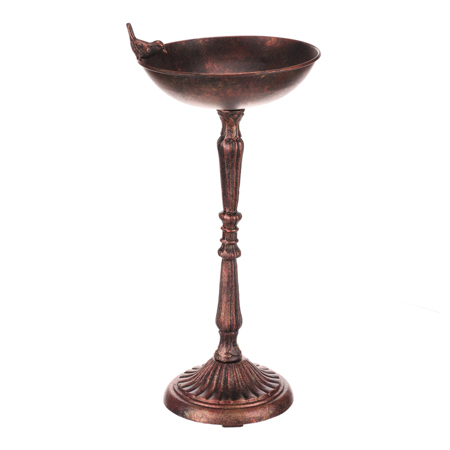 Kovové pítko v elegantní měděné barvě je navrženo tak, aby ptákům poskytlo čistou a snadno dostupnou vodu. Díky misce na stabilním podstavci si vodu mohou ptáci pohodlně vychutnat. Dekorativní detail v podobě malého pěvce dodává produktu jemný vzhled a zvyšuje jeho estetickou hodnotu, díky čemuž pítko může být ozdobou vaší zahrady nebo balkonu.