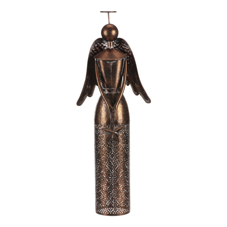 Vyzdobte si váš oblíbení prostor originální ozdobou v podobě elegantního kovového anděla se srdcem. Jeho metalický a zároveň lesklý povrch, odráží dokonale paprsky světla a tím vám vznikne nádherný světelný efekt, zejména při zapálení svíček. Svou měděnou barvou se nejlépe hodí pro Vánoční období, kdy perfektně zapadne do sváteční výzdoby. Anděla tak jednoduše umístěte na poličku, stůl, komodu, okenní parapet a další viditelná místa, odkud vám bude přinášet potěšení a zároveň pocit ochrany a bezpečí domova.