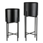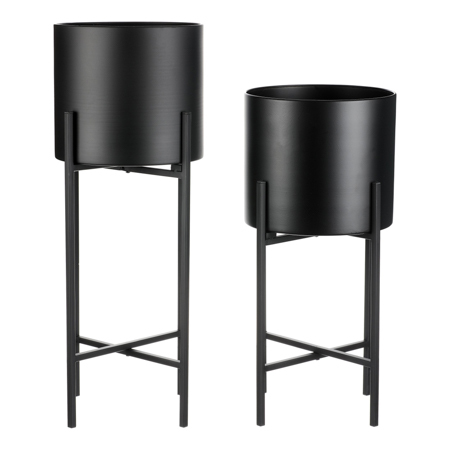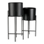 Set 2 ks kovových stojanů na květiny. interiérové provedení. Konstrukce a obal na květináč je kovový, v povrchové úpravě černý mat.