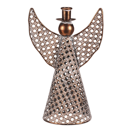 Anděl kovový - 28 cm, na kónickou svíčku, měděný
