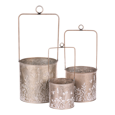 Obal na květiny kovový - závěsný, sada 3ks. Barva světle meďěná.