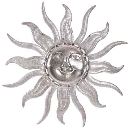 Slunce, kovová dekorace na zavěšení, barva stříbrná
