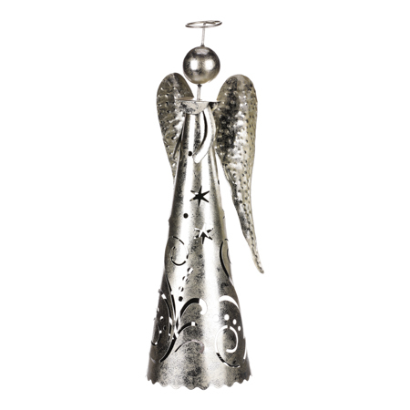 Anděl kovový, s LED svíčkou, barva světle zlatá.