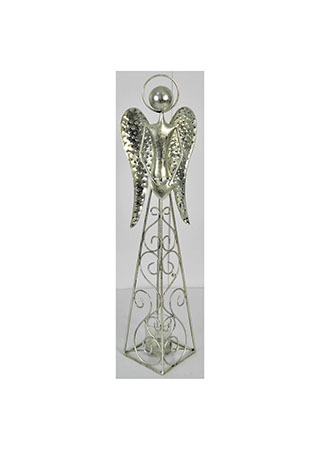 Anděl kovový, na čajovou svíčku, zlatá barva.