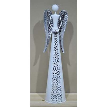 Anděl kovový, s LED svíčkou. Barva bílo-stříbrná.