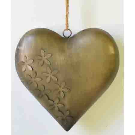 Srdce kovové, barva mědi.