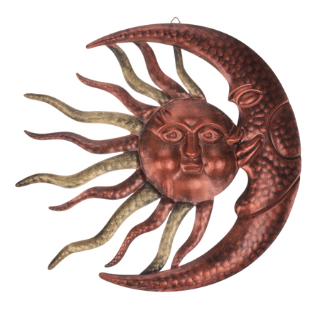 Slunce s měsícem, kovová nástěnná dekorace.