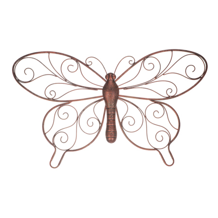 Velká kovová nástěnná dekorace v podobě motýla v měděné barvě bude výrazným dekoračním prvkem na každé stěně. Motýl je v jednobarevném provedení, a jeho křídla jsou zdobená zatočenými drátky, které připomínají zakroucené větvičky popínavých rostlin. Samotné tělo motýla s tykadly je vysoce elegantním prvkem celé kovové dekorace. Motýl je určen k zavěšení na stěnu, a proto byste měli najít dostatek místa na dobře viditelném místě, kde ji mohou obdivovat všichni návštěvníci. Je to skvělý způsob, jak přidat do vašeho interiéru malé umělecké dílo s nádechem elegance a originality.