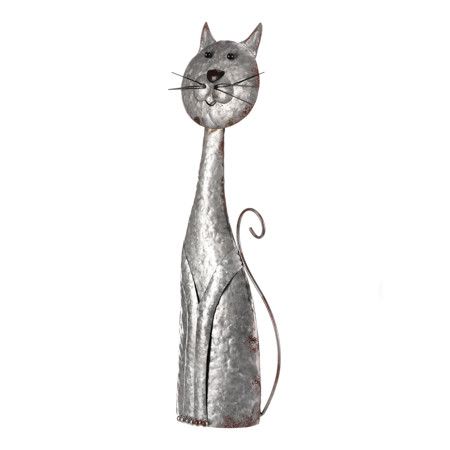 Tato kovová dekorace představuje figurku kočky ve stříbrné barvě, přičemž její povrch evokuje vzhled čerstvě pokované ozdoby. Je ideální pro interiéry a další krytá místa, kde právě na kov nebudou působit povětrnostní vlivy. Toto unikátní a netradiční pojetí dekorace může působit samostatně na dobře viditelném místě, nebo ji můžete začlenit do rozsáhlejších výzdob společně s dalšími figurkami, květinami nebo různými přízdobami. Rozhodně svým netradičním provedením a roztomilým vzhledem zaujme každého pozorovatele a bude jedním z nejvýraznějších bodů v prostoru.