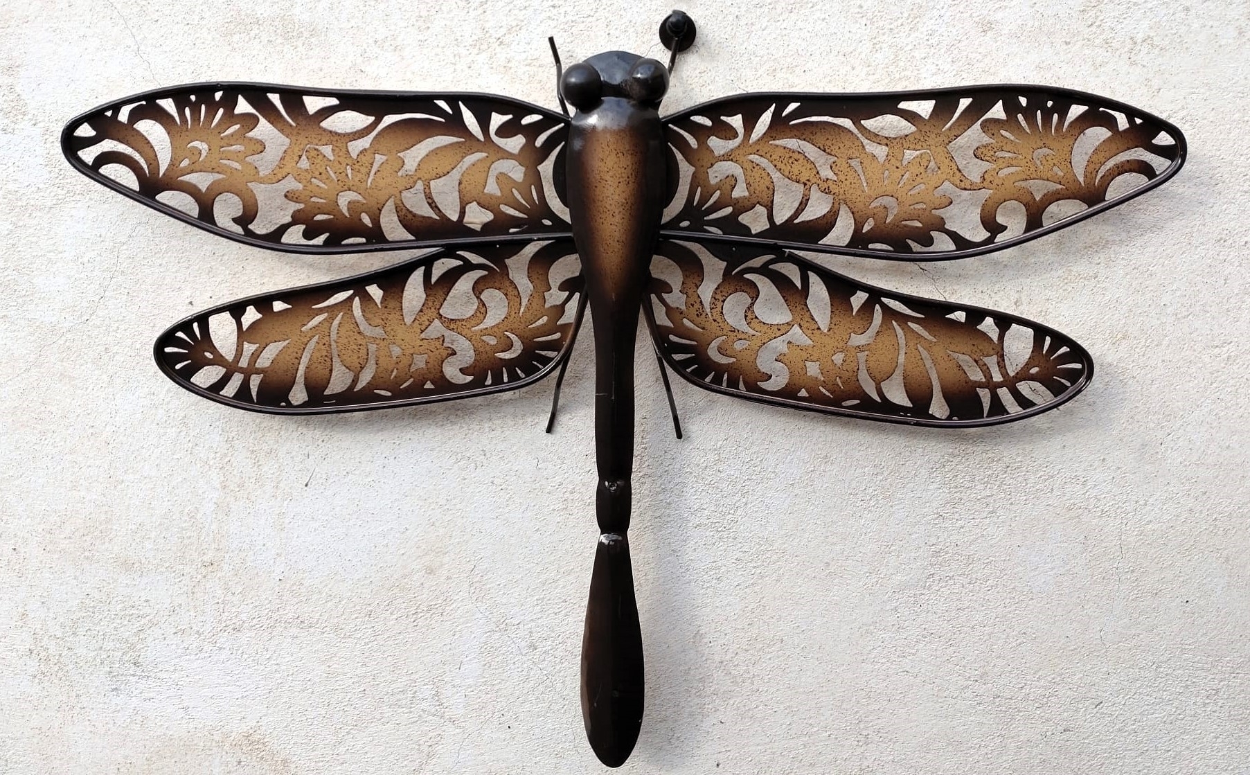 Vážka kov hnědobéžová větší je stylovým doplňkem, který vdechne vašemu prostoru jedinečnou atmosféru a přinese kousek přírody do vašeho domova nebo zahrady.
