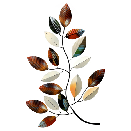 Tato kovová nástěnná dekorace představuje přírodní krásu vyjádřenou prostřednictvím uměleckého kovu. Jedná se o větev s lístky stříbrné, měděné až bílé barvy, která má rozměry zhruba 80 x 44 cm. Větev s lístky představují eleganci a jemnost přírody, zatímco použití kovu dodává dekoraci moderní a umělecký vzhled. Tato nástěnná dekorace je skvělým způsobem, jak vnést do vašeho prostoru nádech elegance a přirozenosti. Stačí najít to správné místo, kde může tato unikátní ozdobná větev vyniknout a stát se centrálním prvkem vybrané místnosti. Vaši návštěvníci budou ohromeni při pohledu na tento dekorační skvost.
