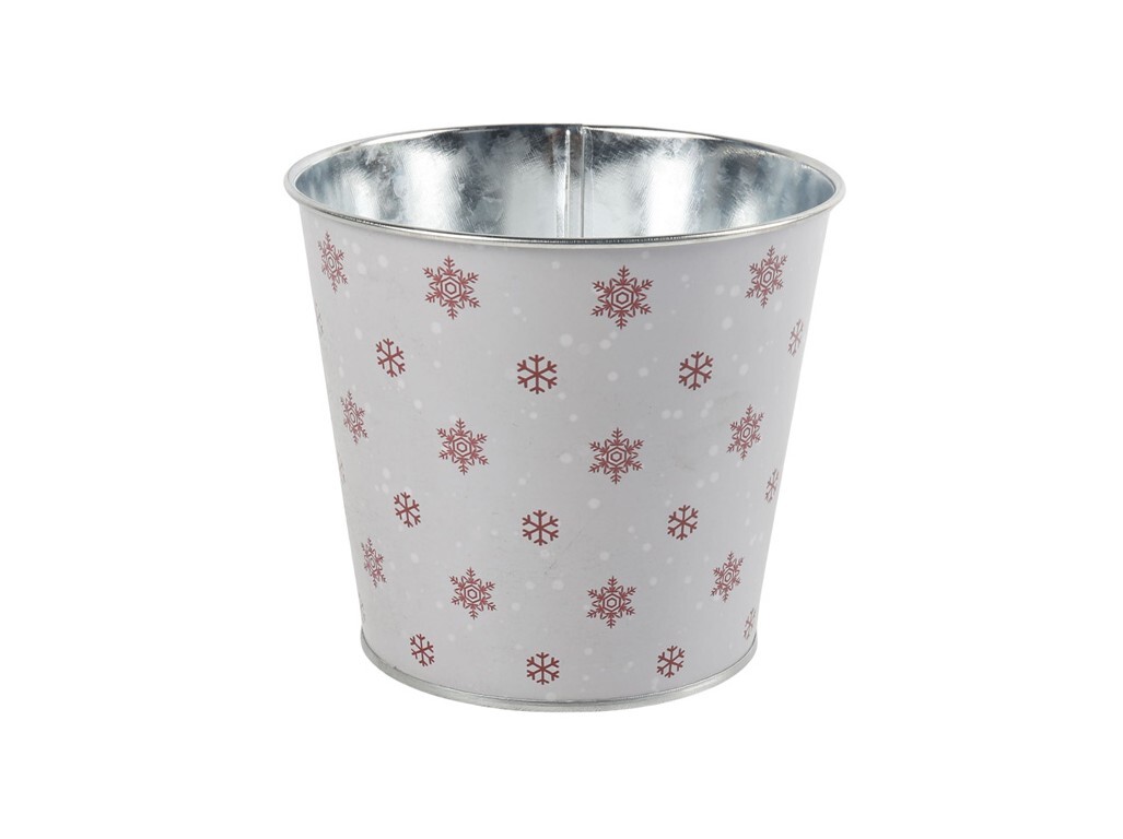 Květináč plechový 133x115mm klasik vločky, bílá, červená