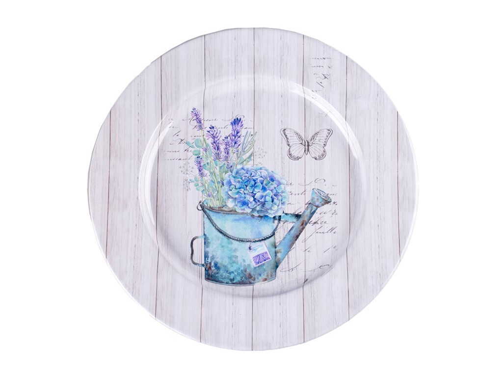 Talíř plechový 330x15mm design konev s květinami, barevná
