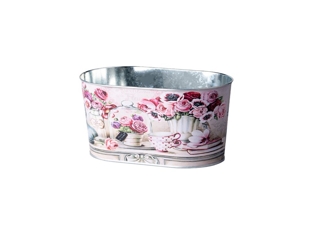 Květináč plechový 225x135x115mm, oválný květiny, barevná