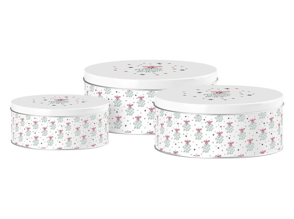 Plechová kulatá dóza MISTLETOE MAGIC, bílá, set 3 ks, 200x90/185x80/140x65mm