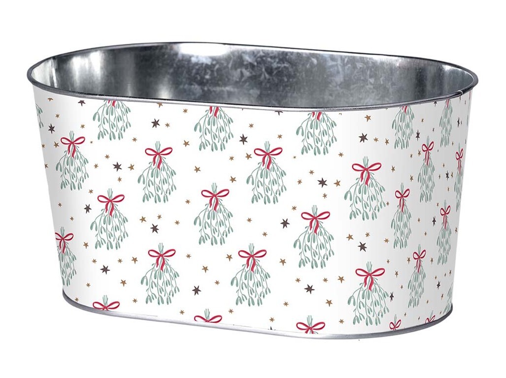 Květináč plechový 225x110mm oválný MISTLETOE MAGIC , bílá, modrá