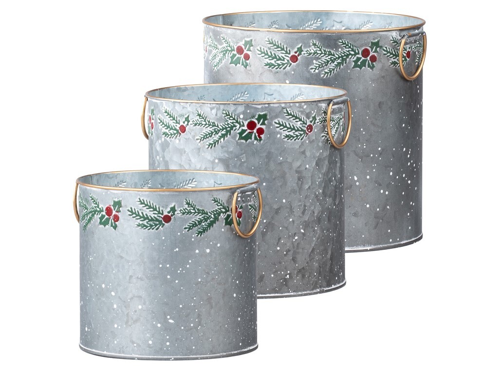 Plechové kulaté dózy s uchy s vánočním motivem v šedé barvě jsou krásným a praktickým produktem, který se hodí do každé domácnosti. Dózy lze využít k uložení různých drobností nebo také jako květináč. Mohou sloužit jako krásná dekorace na Vánoce. Jedná se o ideální dárek pro všechny, kteří si chtějí zpestřit vánoční atmosféru.