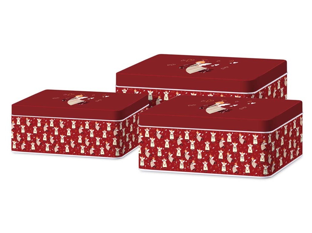 Plechová hranatá dóza HOLIDAY SPIRIT, červená, set 3 ks, 210x210x83/180x180x75/150x150x70mm