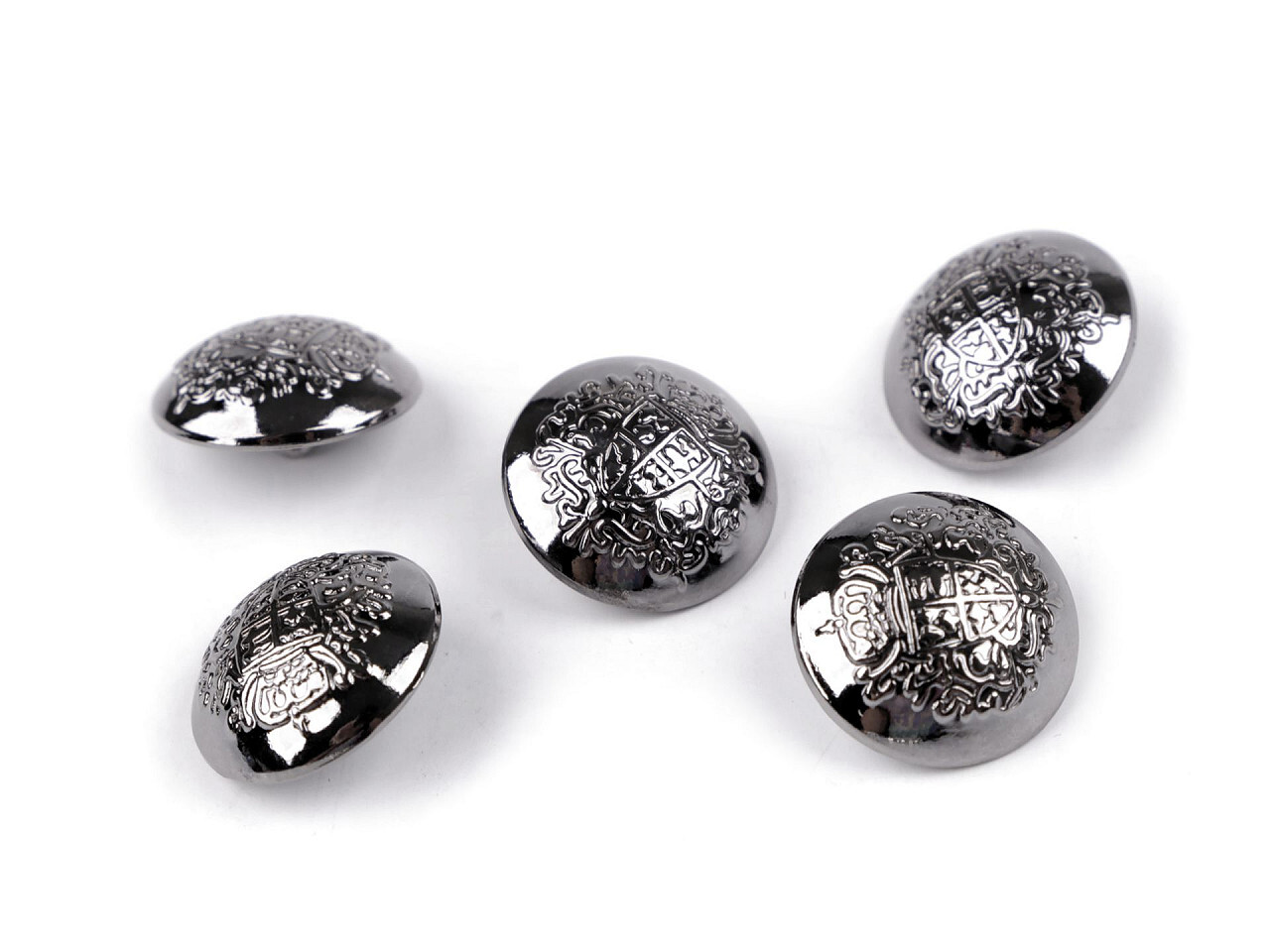 Kovové knoflíky se kromě praktického využití stanou elegantním doplňkem vašeho oděvu. Knoflíky se spodním přišíváním skvěle vyniknou na saku nebo kabátku vojenského stylu. Díky vyobrazenému erbu se také výborně hodí k přišití na uniformy, myslivecké oblečení či dobové kostýmy.Velikost knoflíků...