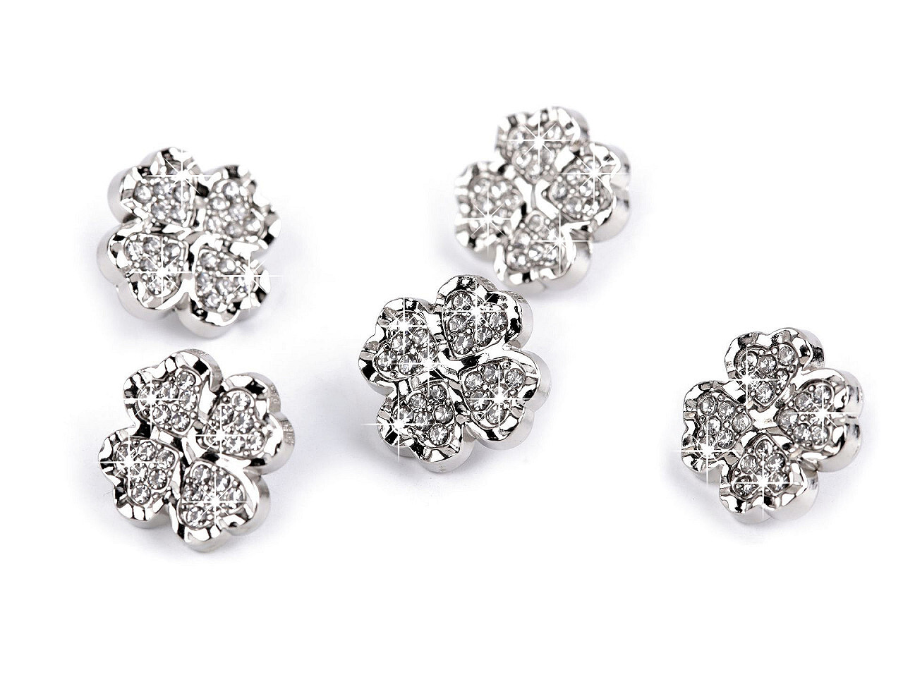 Kovový knoflík čtyřlístek s kamínky velikost 20" - 30 ks - stříbrná crystal