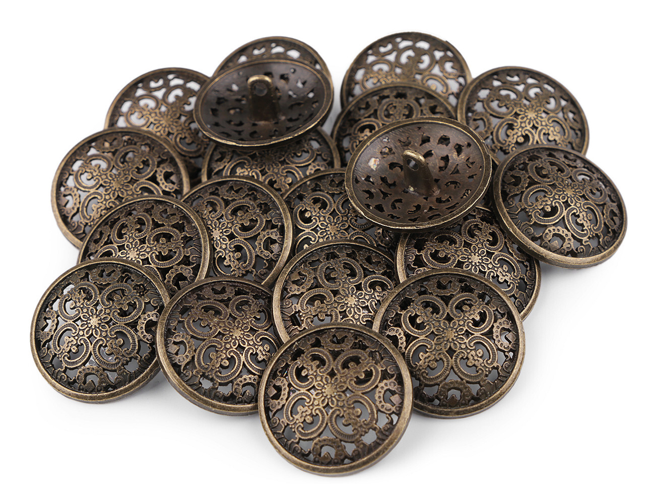 Kovový knoflík filigrán velikost 40" - 5 ks - 4 mosaz
