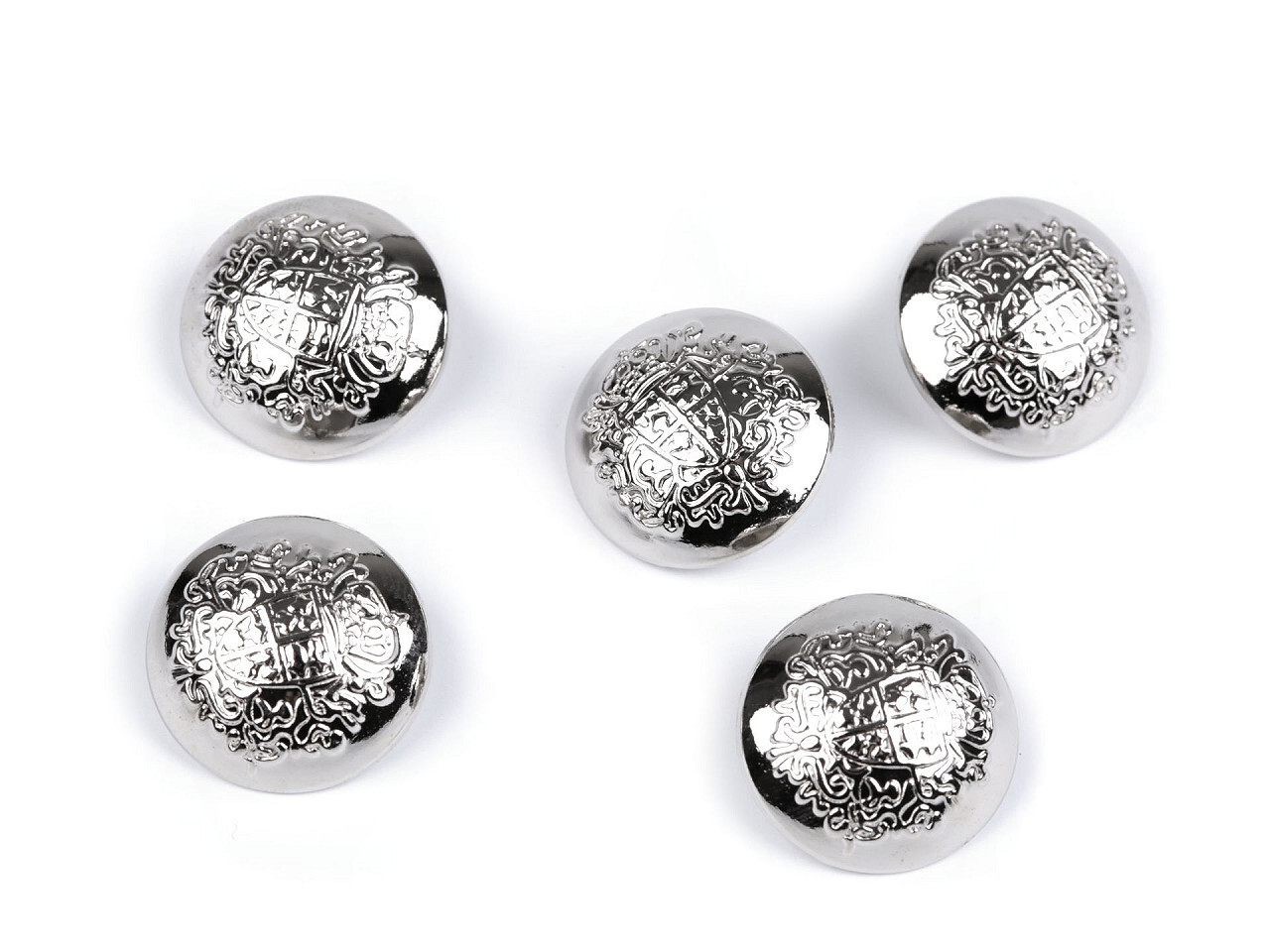 Kovové knoflíky se kromě praktického využití stanou elegantním doplňkem vašeho oděvu. Knoflíky se spodním přišíváním skvěle vyniknou na saku nebo kabátku vojenského stylu. Díky vyobrazenému erbu se také výborně hodí k přišití na uniformy, myslivecké oblečení či dobové kostýmy.Velikost knoflíků...