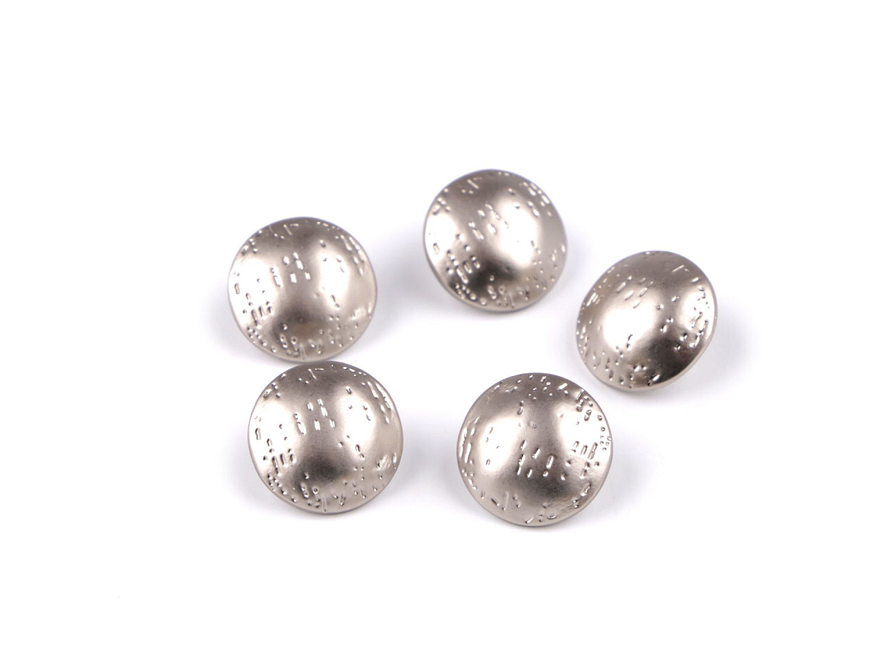 Vypouklé kovové knoflíky stylově vyniknou na sakách, kabátech, svetrech, šatech, košilích apod. Mají jemně tepaný povrch a spodní přišívání.Velikost knoflíků naleznete v této tabulce. číst celé