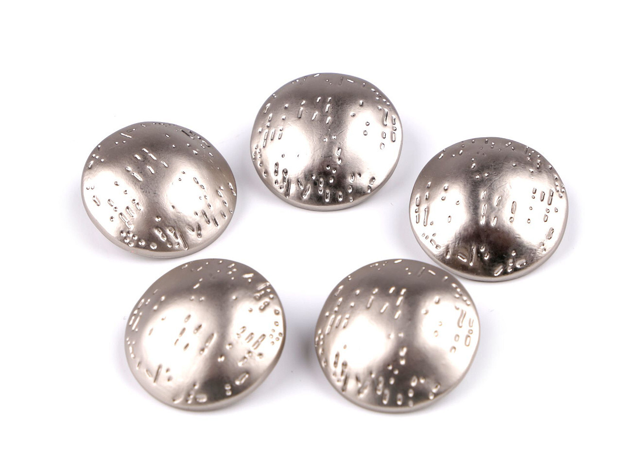 Vypouklé kovové knoflíky stylově vyniknou na sakách, kabátech, svetrech, šatech, košilích apod. Mají jemně tepaný povrch a spodní přišívání.Velikost knoflíků naleznete v této tabulce. číst celé