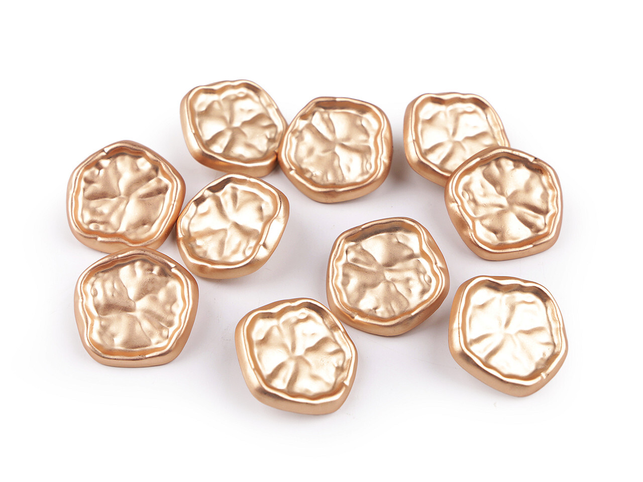 Knoflík kovový mačkaný vzhled velikost 32", 36" - 10 ks - 2 (36") zlatá sv.