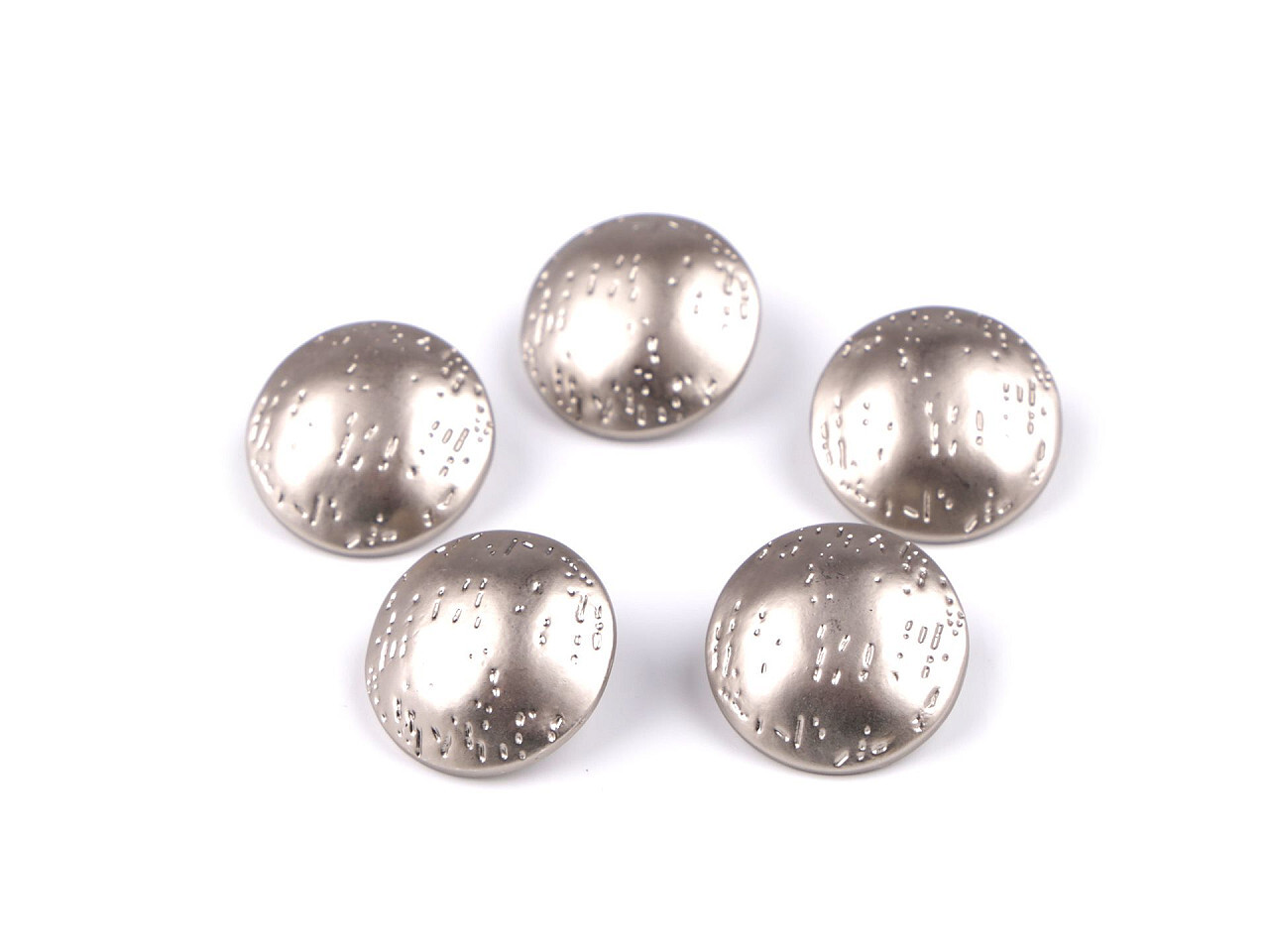 Vypouklé kovové knoflíky stylově vyniknou na sakách, kabátech, svetrech, šatech, košilích apod. Mají jemně tepaný povrch a spodní přišívání.Velikost knoflíků naleznete v této tabulce.