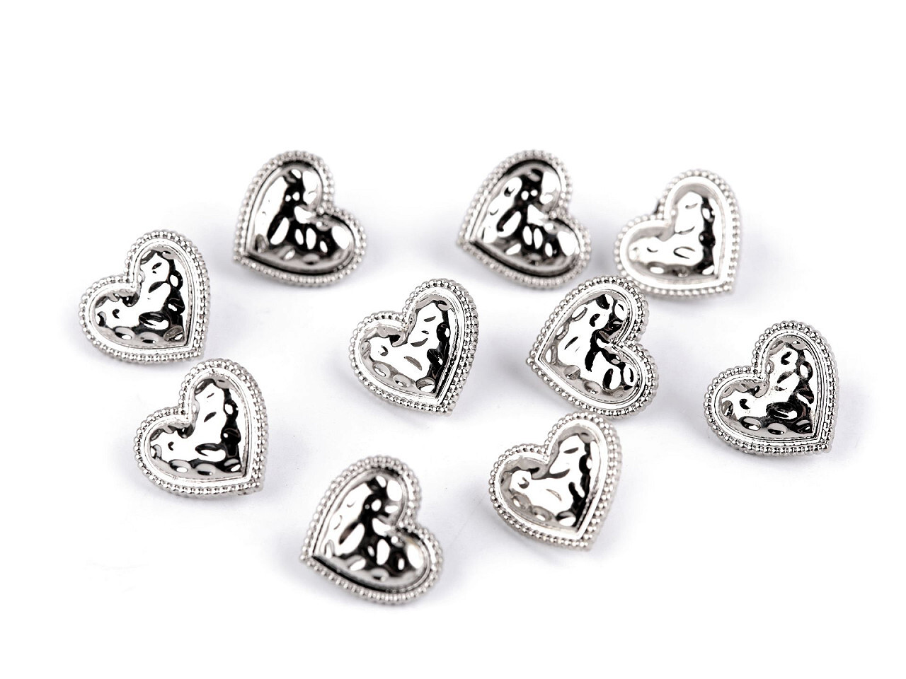 Kovový knoflík srdce velikost 18" - 200 ks - 1 stříbrná