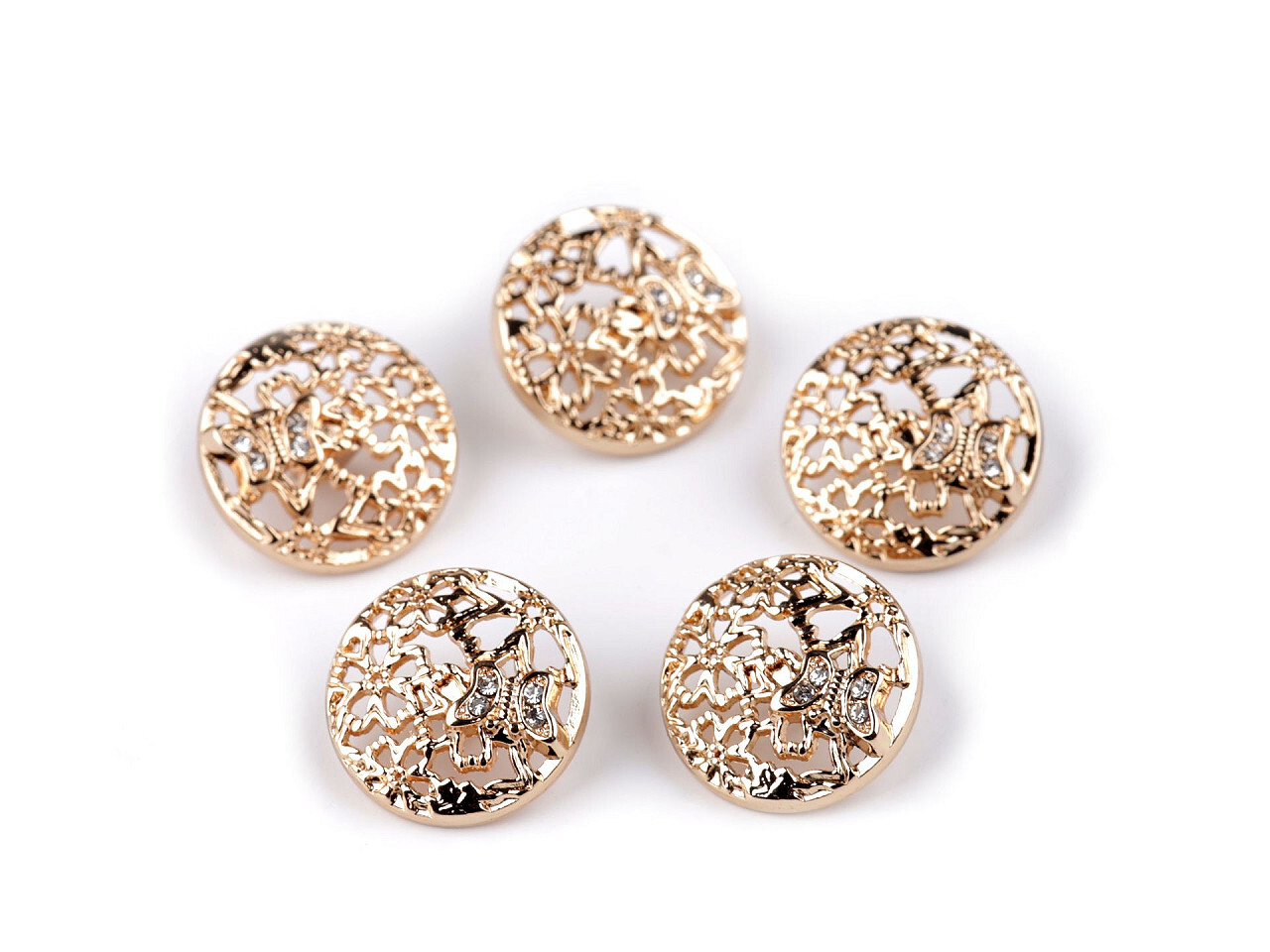 Kovový knoflík velikost 28", 34" s motýlkem a kamínky - 20 ks - 3 (28") růžové zlato