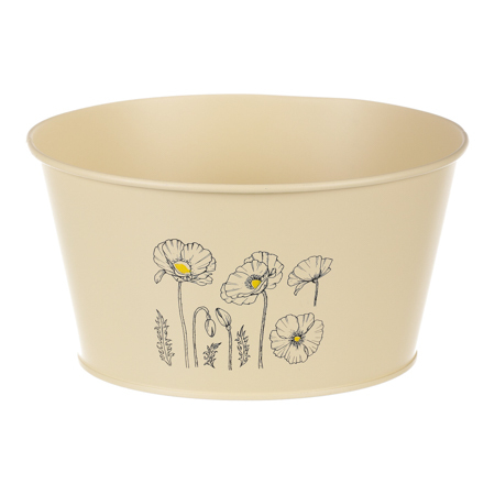 Obal kovový, žlutá barva s máky.
