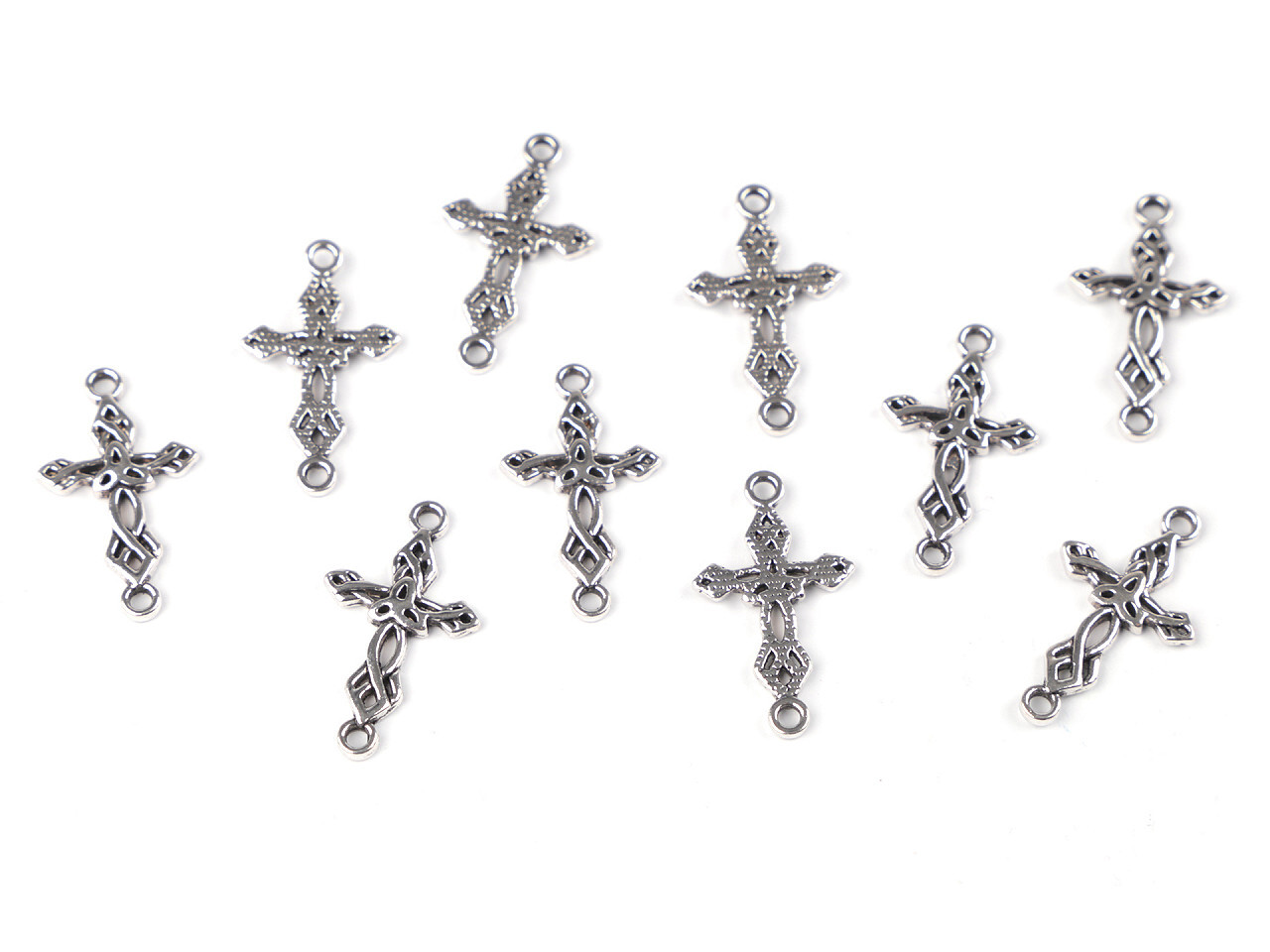 Ozdobný díl / přívěsek křížek 13x22 mm - 10 ks - platina