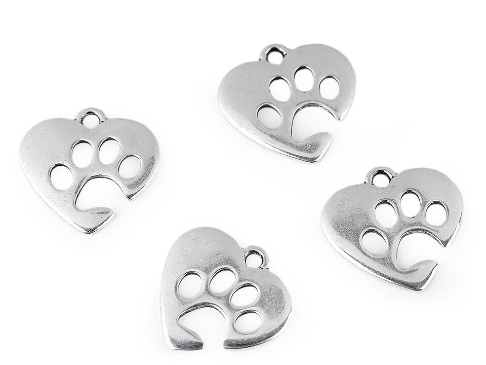 Přívěsek srdce / tlapka - 10 ks - 1 platina