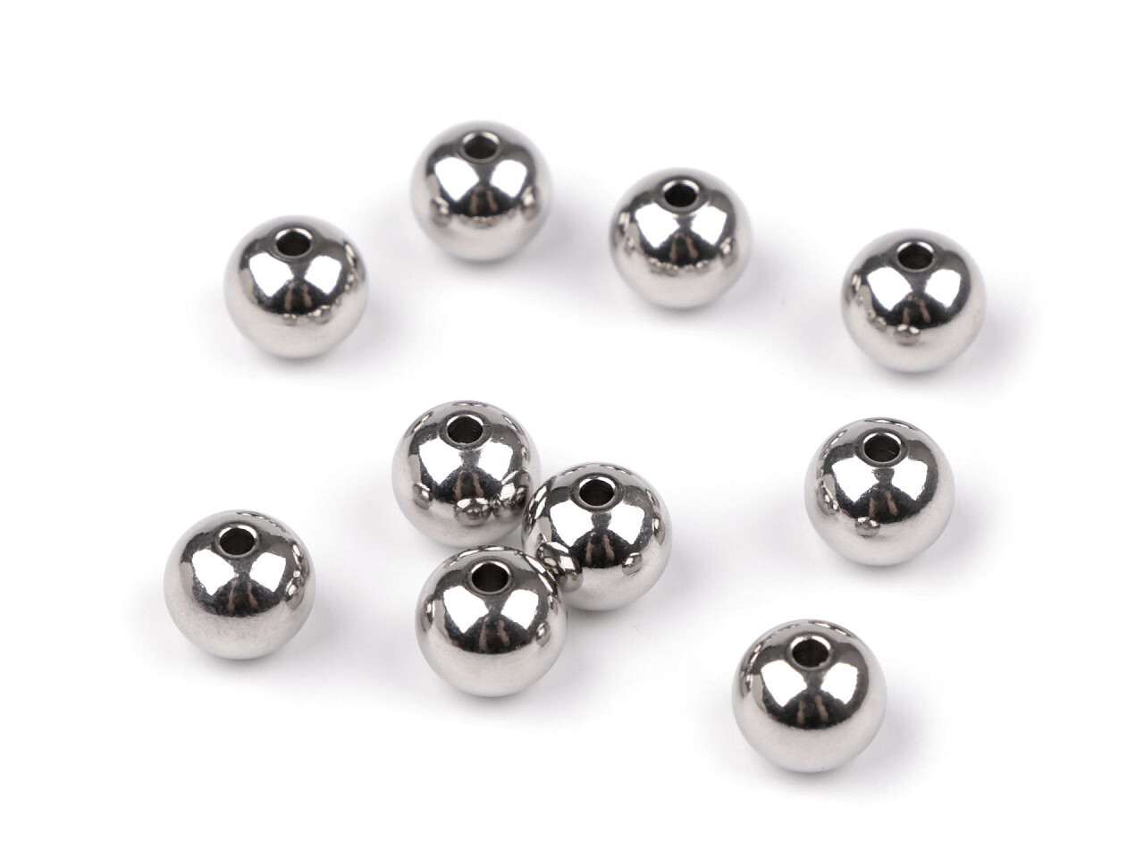 Korálky z nerezové oceli Ø10 mm - 10 ks - platina