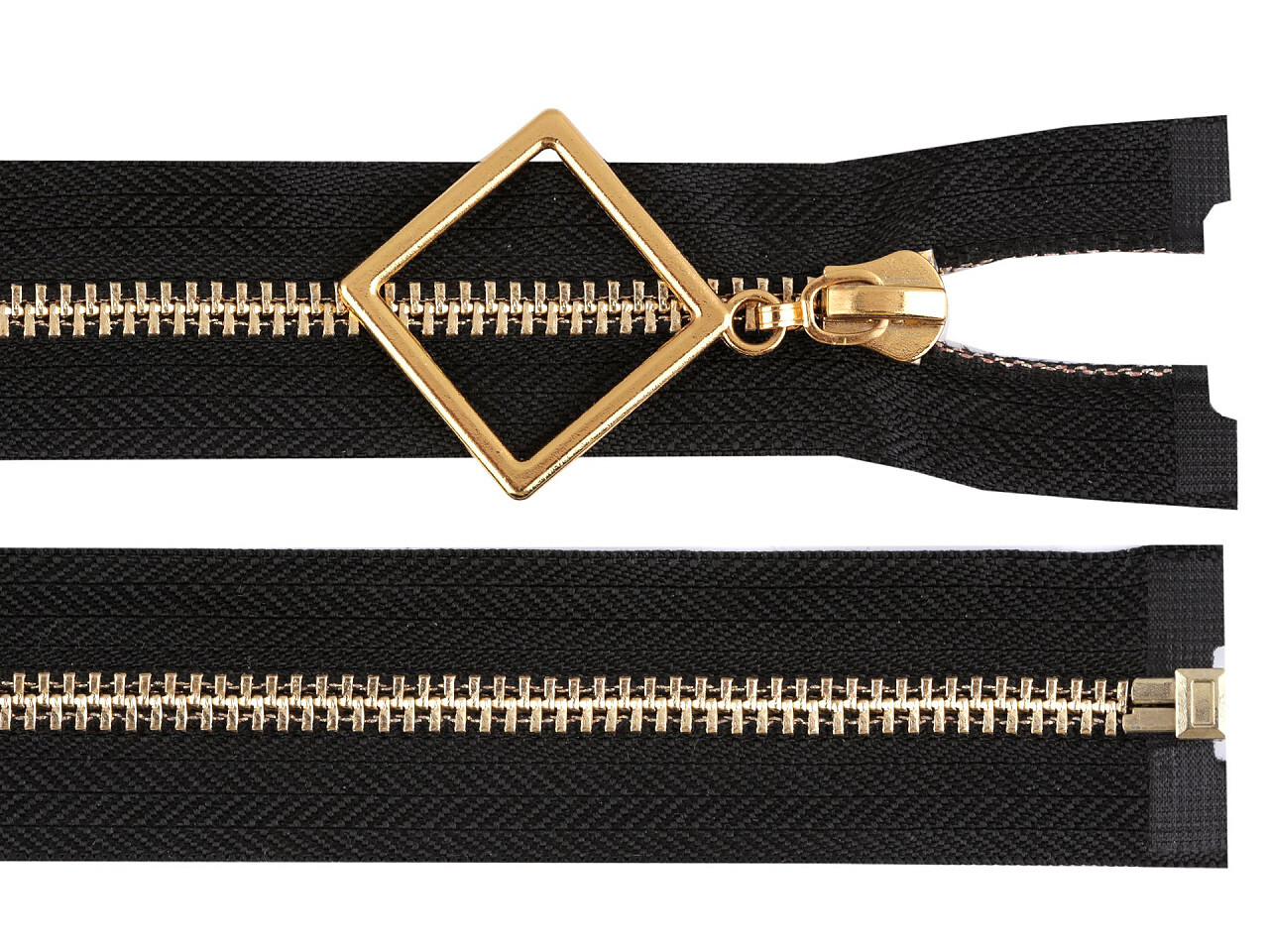 Kovový zip No 5 délka 70 cm s ozdobným jezdcem - 1 ks - černá