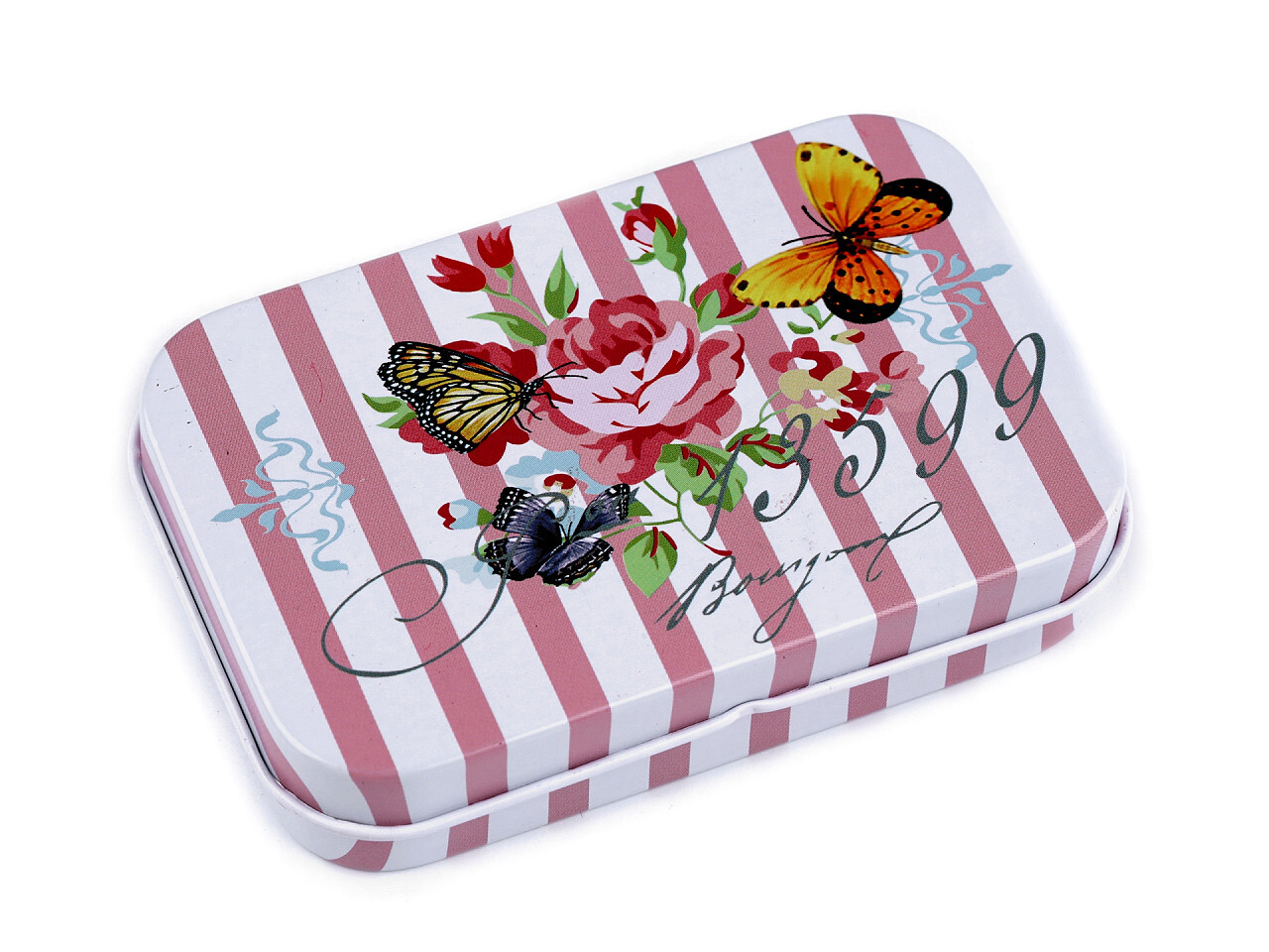 Plechová krabička květy růže - 1 ks - 19 růžová