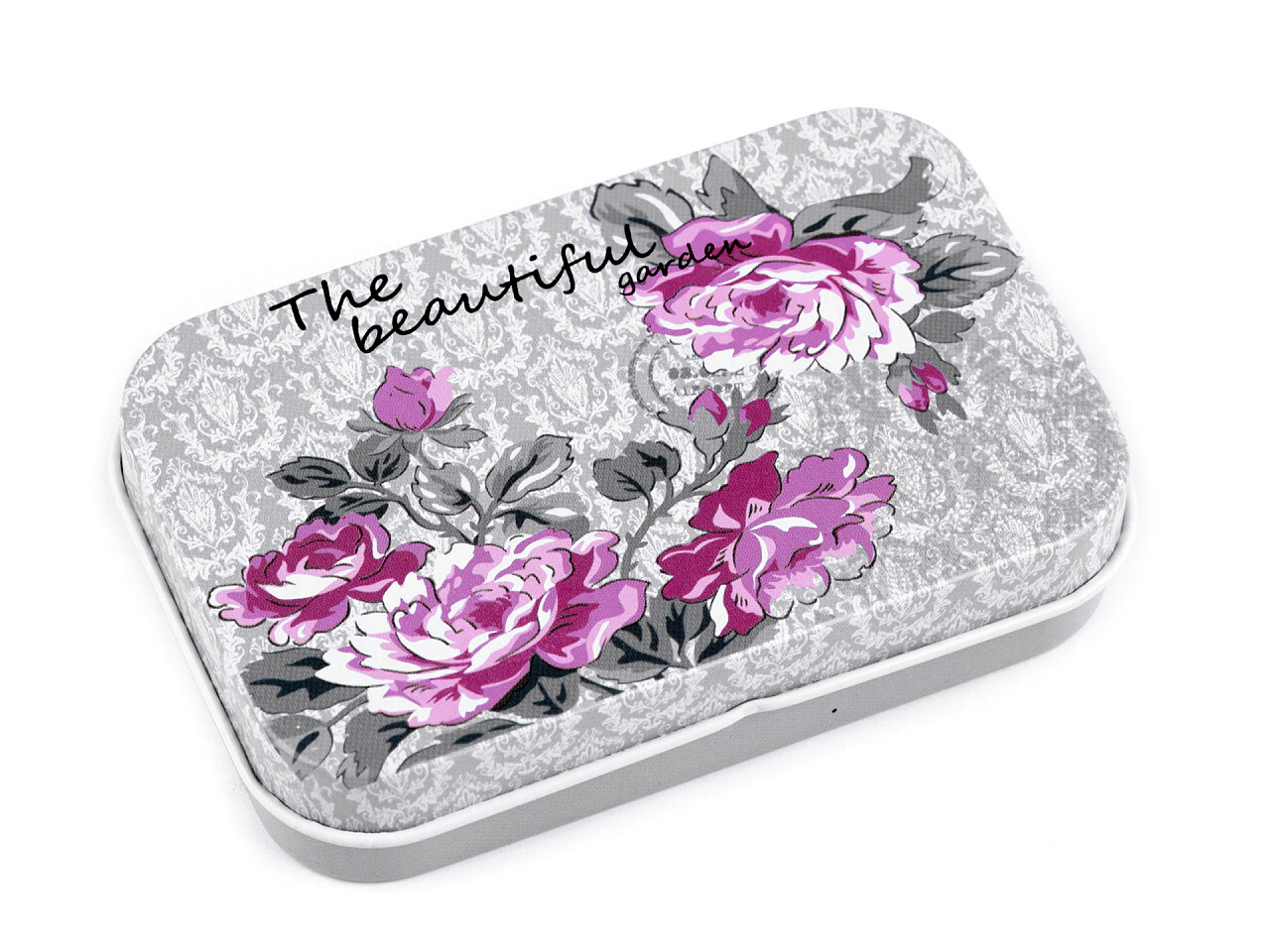 Plechová krabička květy růže - 1 ks - 15 šedá světlá