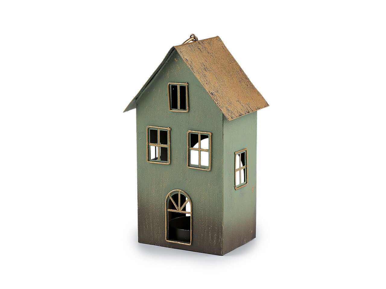 Kovový domeček na svíčku - 1 ks - 1 zelená pastelová sv. zlatá