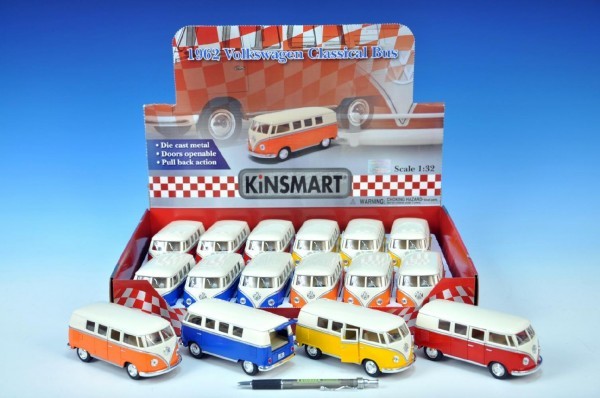 VW Classic autobus Kinsmart 1962 kov 13cm zpětný chod 4barvy 12ks v DBX