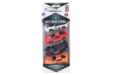 Sada čtyř kusů kovových modelů sportovních aut o rozměru cca 8 x 2 x 4 cm. Rozměr balení cca 24,5 x 10 x 5 cm. Věk 3+
