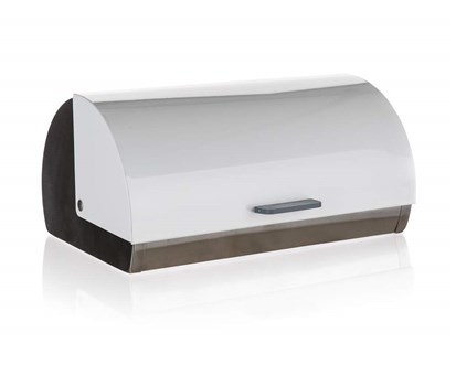 Nerezový chlebník TUBE o rozměru 38,5 x 28 x 18,5 cm slouží k uchovávání všech druhů pečiva. Víko má kovovou povrchovou úpravu v bílé barvě a plastový úchyt. Povrchová úprava chlebníku: mat, typ nerezové oceli: 430, síla nerezu 0,4 mm.
