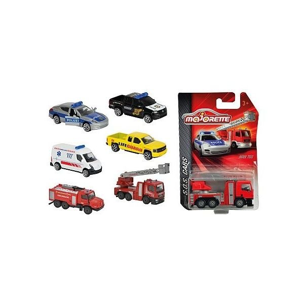 Kovové auto na volnoběh, mezinárodní verze. Pohyblivé a/nebo otevírací části. Délka 7,5 cm. 6 druhů: Chevrolet Silverado, hasičské auto MAN TGS nebo Mercedes-Benz Zetros, ambulance Renault, policejní auto VW Amarok nebo Porsche Panamera. Věk: 3+ číst celé