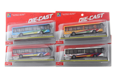 Kovový autobus o rozměrech cca 15,5 x 4 cm na kartě. Rozměr balení cca 22 x 14,5 x 4,5 cm. Věk 3+ číst celé
