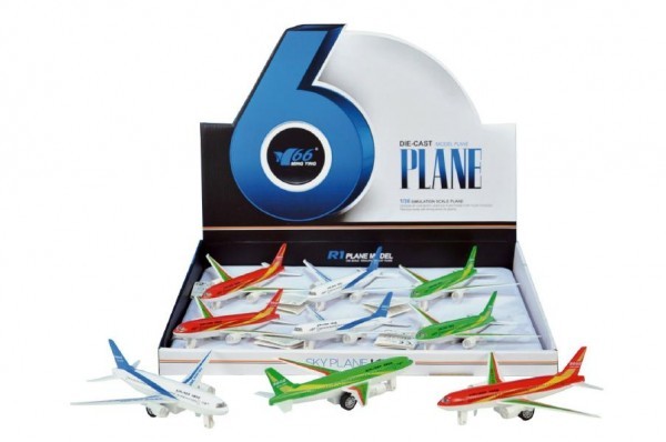Dopravní letadlo kov 18cm zpětný chod na baterie se světlem a zvukem asst 3 barvy 6ks v DBX